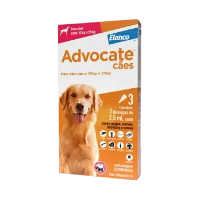 O Antipulgas Advocate Cães 10 a 25kg é indicado para tratamento contra pulgas, vermes e sarnas. Sua ação é eficaz em cães a partir de 7 semanas de vida, gestantes, lactantes e cães de raças sensíveis, como os Collies.