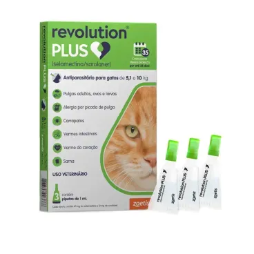 A Revolution Plus é um novo antiparasitário para gatos, proporcionando uma experiência de aplicação superior, descomplicada e comprovada. É a proteção 6 em 1 que cuida de todo o corpo do seu gato, garantindo segurança, praticidade e eficácia. Fabricado pela Zoetis, referência mundial em saúde animal, este antiparasitário tópico mensal oferece proteção completa contra parasitas internos e externos, essencial até para gatos que ficam dentro de casa.