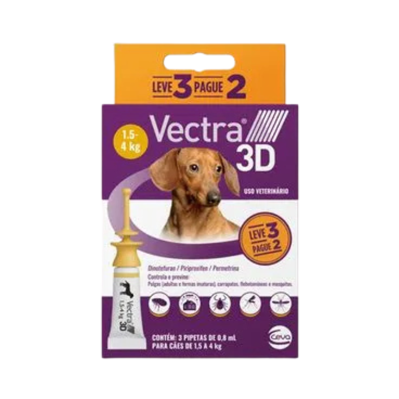 Antipulgas Vectra 3D Cães 1,5 a 4 kg Ceva 0,8 ml Leve 3 Pague 2