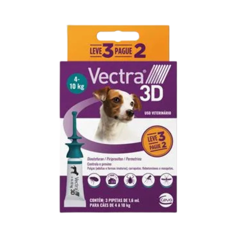 Antipulgas Vectra 3D Cães 4 a 10 kg Ceva 1,6 ml Leve 3 Pague 2