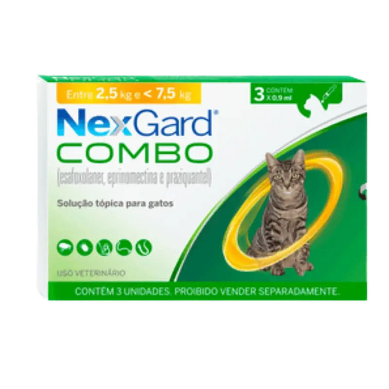 O Nexgard Combo é um antipulgas, sarna e vermífugo para gatos adultos e filhotes com peso de 2,5 a 7,5 kg que oferece proteção 3 em 1 contra pulgas, sarna e vermes, garantindo a saúde e o bem-estar do seu gato com um único tratamento. O uso do Nexgard é essencial, pois os parasitas podem ter um impacto significativo na saúde e no bem-estar dos felinos.