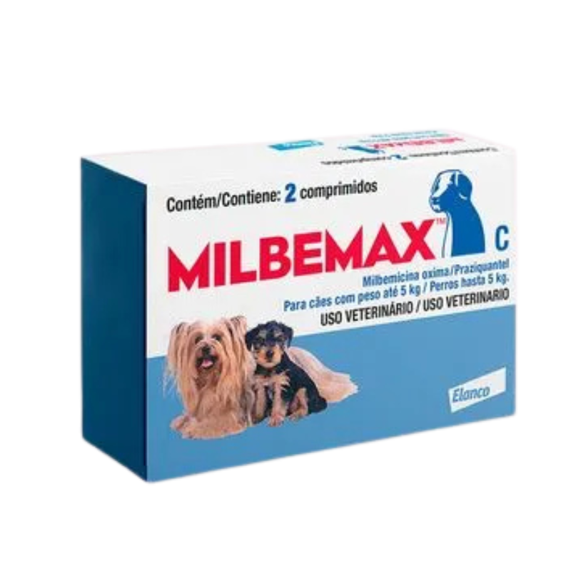 A embalagem do Milbemax C para cães até 5kg vem com dois minicomprimidos, facilitando a administração para cães de tamanhos mini e pequeno. Leia aqui tudo o que um tutor de cachorros pequenos precisa saber antes de comprar o Milbemax C.