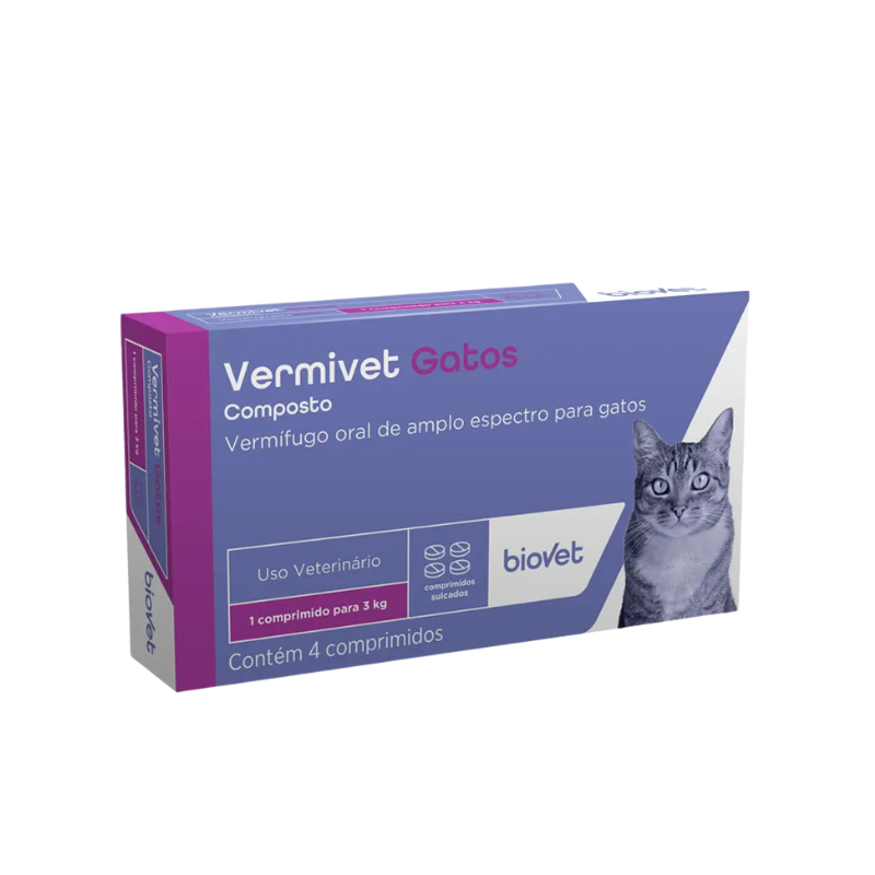 O Vermífugo Vermivet para Gatos Composto Biovet é indicado no tratamento e controle das principais verminoses que acometem os gatos e possui comprovada eficácia contra os seguintes agentes etiológicos: Toxocara cati, Toxocara canis, Toxascaris leonina, Ancylostoma tubaeforme, Ancylostoma braziliense, Ancylostoma caninum, Uncinaria stenocephala, Physaloptera, Joyeuxiella pasqualei, Dipylidium caninum, Taenia pisiformis, Taenia taeniaeformis, Taenia hydatigena, Taenia multiceps, Taenia ovis, Echinococcus multilocularis, Echinococcus multiloculares, Mesocestoides corti.